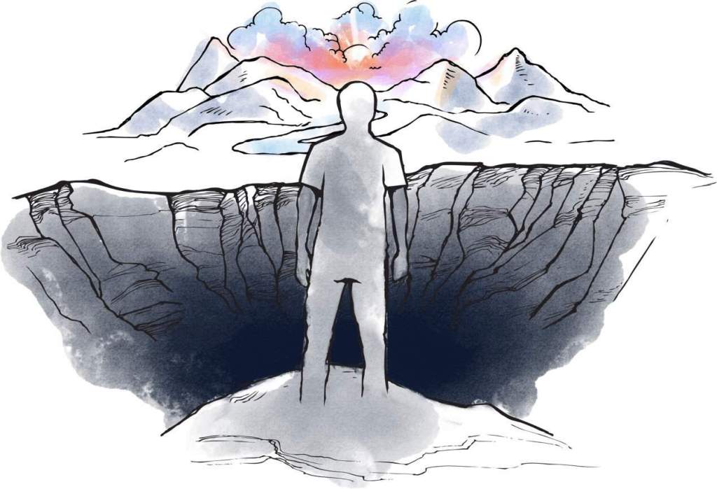 This image illustrates that God is holy and people are sinful. A great gulf separates us. We are continually trying to reach God and the abundant life through our own efforts, such as a good life, philosophy, or religion – but we inevitably fail.